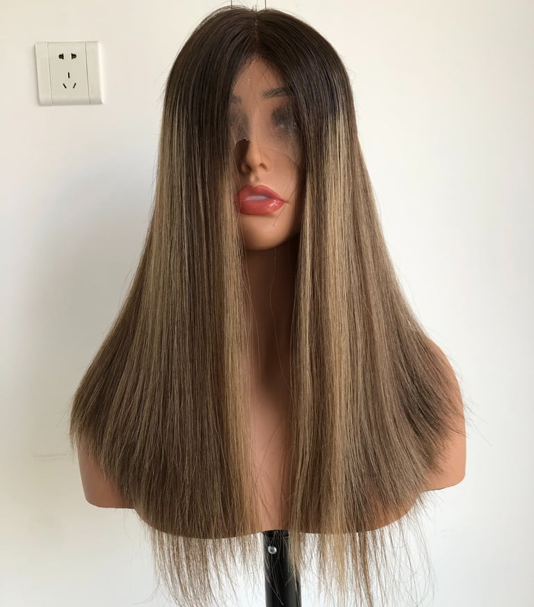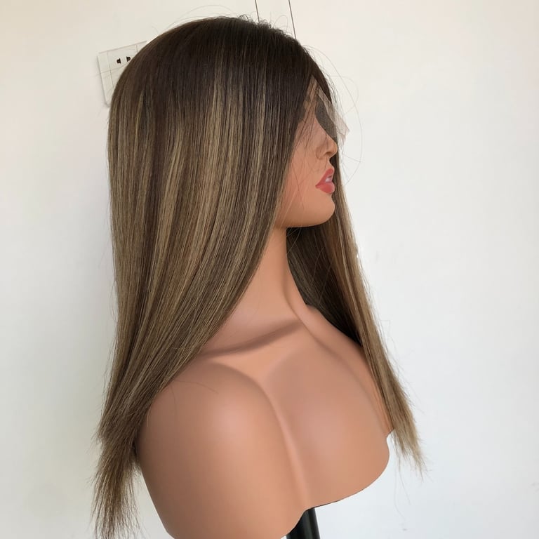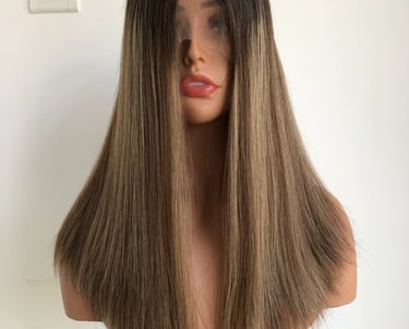Dark Brown Dark Highlight Blonde HD Lace Front Jewish Wig