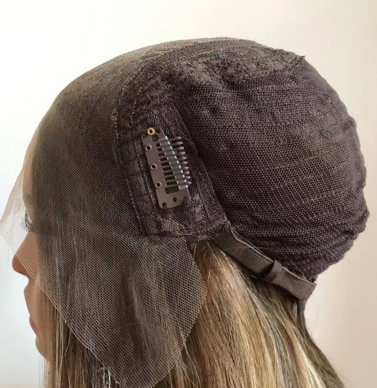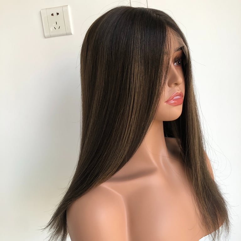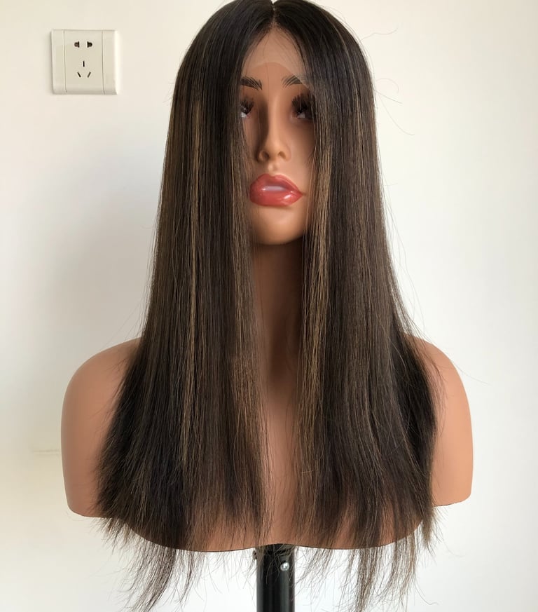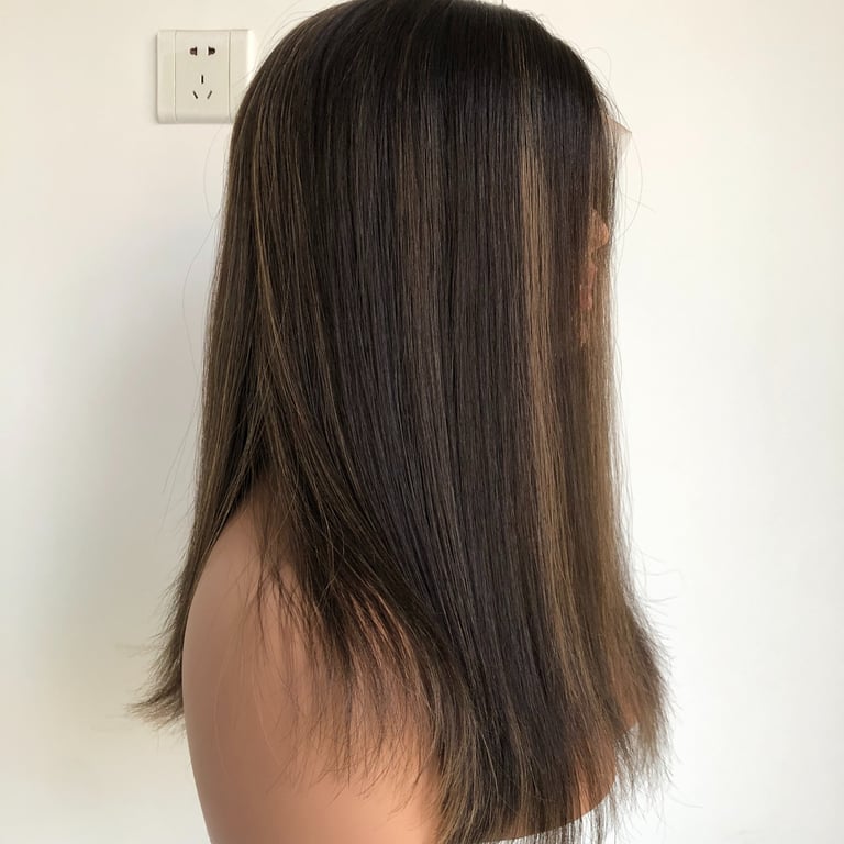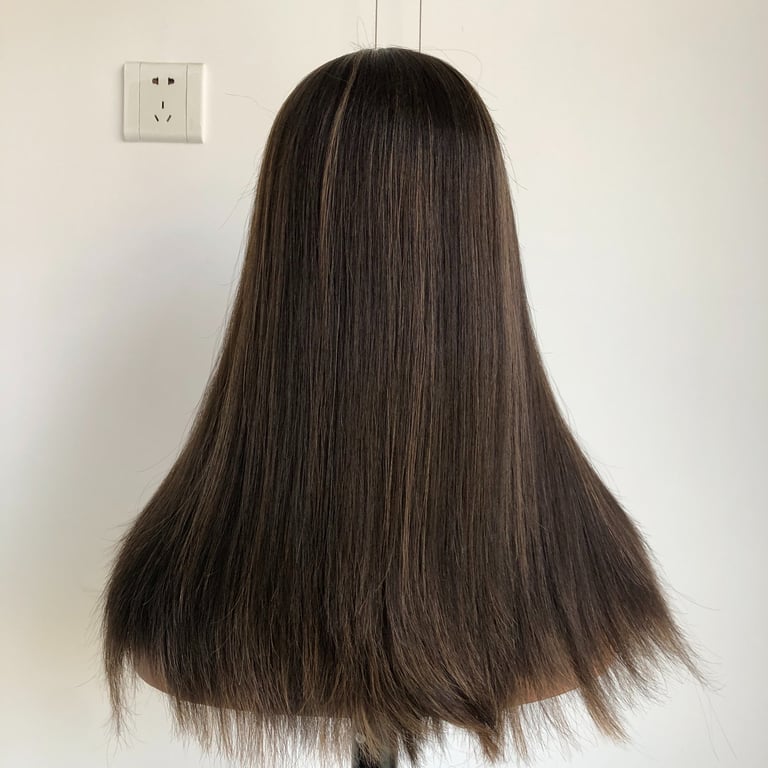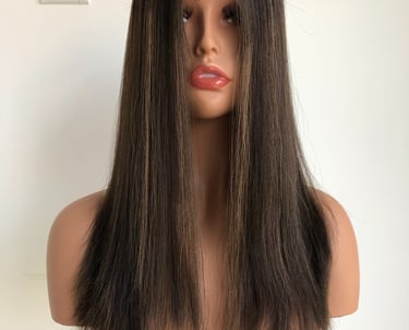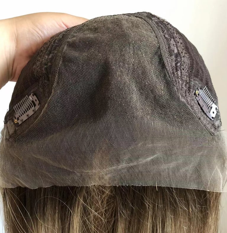 Ombre Dark Brown with a little Blonde Balayage Glueless HD Jewish Wig