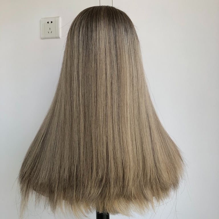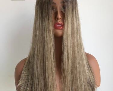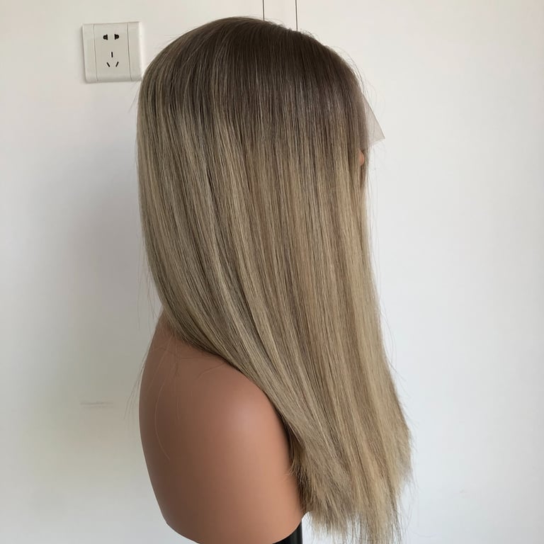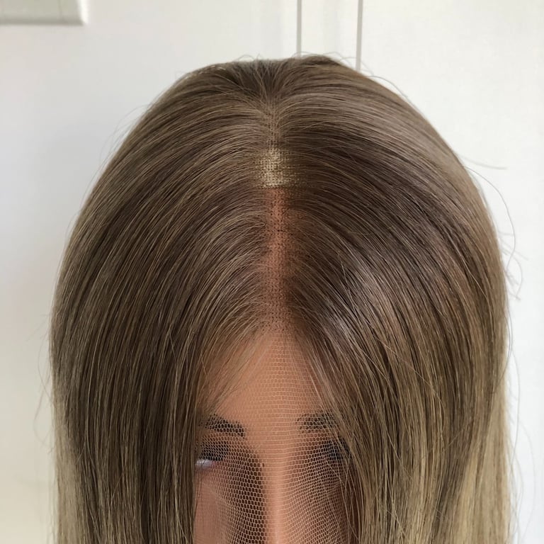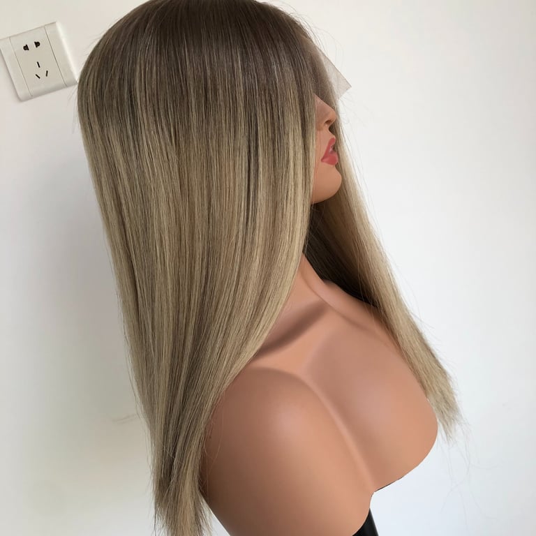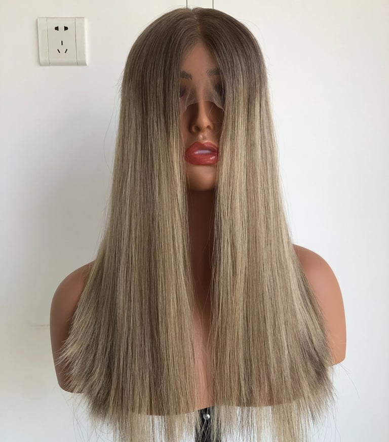 Swiss Human Wig Virgin Dark Blonde With Pale Blonde Balayage Glueless HD Lace Front Jewish Wig